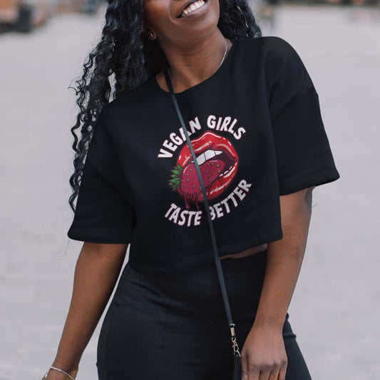 VEGAN GIRLS TASTE BETTER | DAMEN OVERSIZE CROP TOP