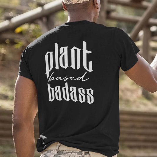 PLANT BASED BADASS | HERREN PREMIUM V-NECK BIO SHIRT | BACK PRINT