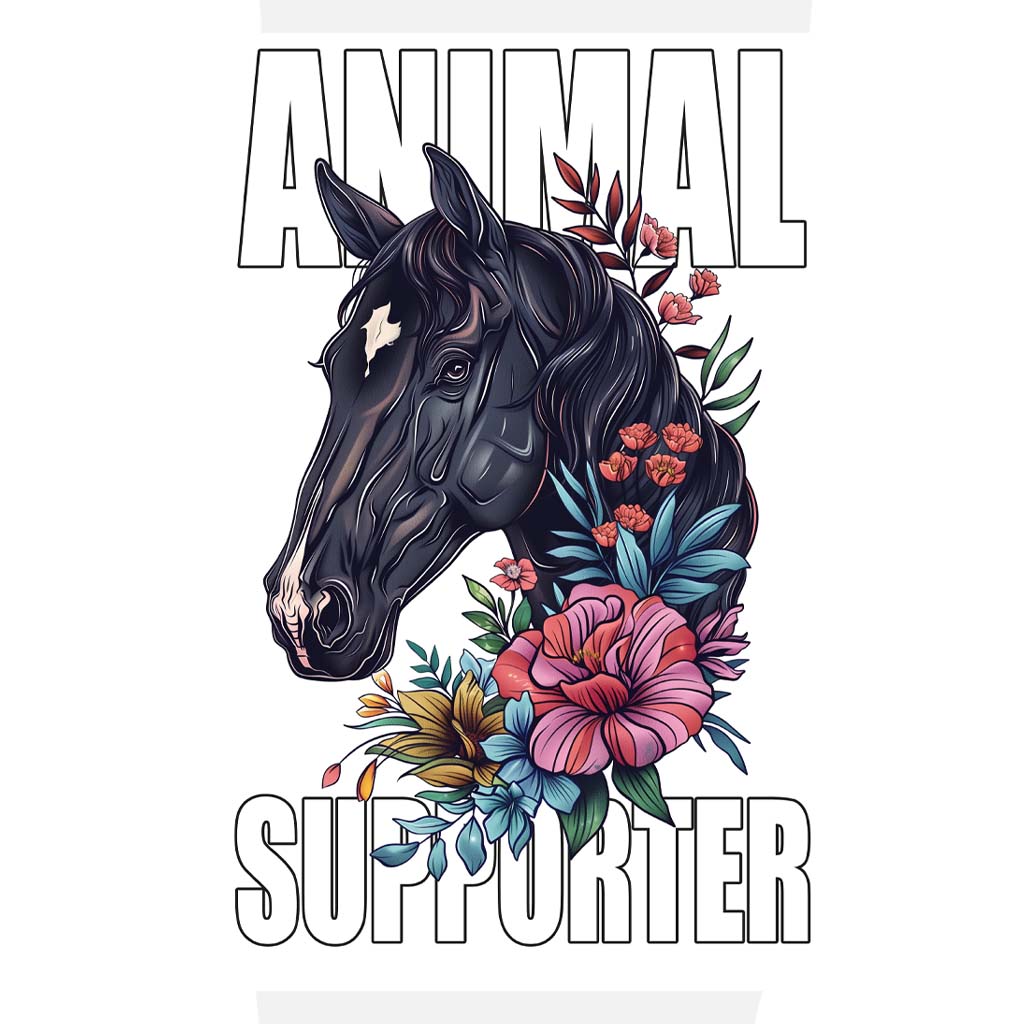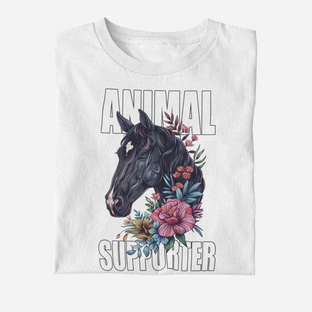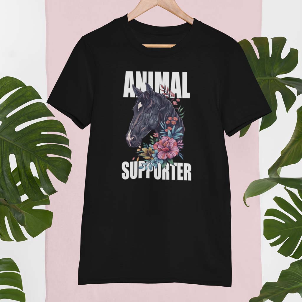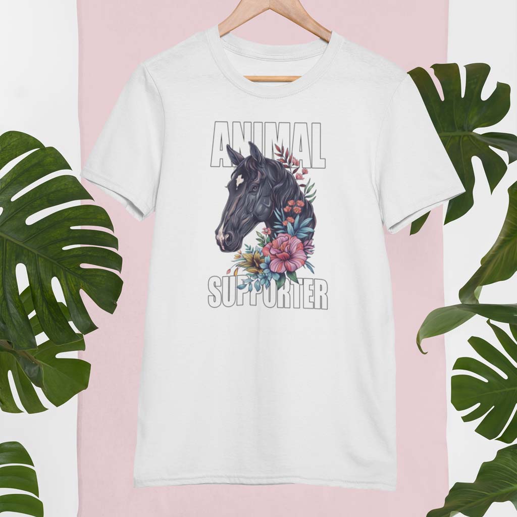 Dieses liebevoll gestaltete Bio-Shirt zeigt ein anmutiges Pferd, umgeben von zarten Blumen. Der Schriftzug „animal supporter“ bringt zum Ausdruck, was dich ausmacht: Mitgefühl, Verbundenheit und eine tiefe Liebe zu Tieren.